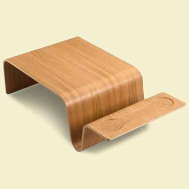 The entire family will enjoy the Offi Overlap Tray in Oak. It takes away the worry of a hot laptop and is a fabulous way to do a little more work or study after getting in bed. It is big enough to hold essential work or play items and keep everything within easy reach. The cork inset on the end will absorb moisture from a drink and the same ledge is big enough for pens, pencils, TV remote and cell phone. The unique design creates a downward loop between the drink ledge and work area that is a nook for files, loose papers and more. It can be turned in either direction for right or left handed use. Kids and adults can use this exceptional tray and it is ideal for handicapped individuals.