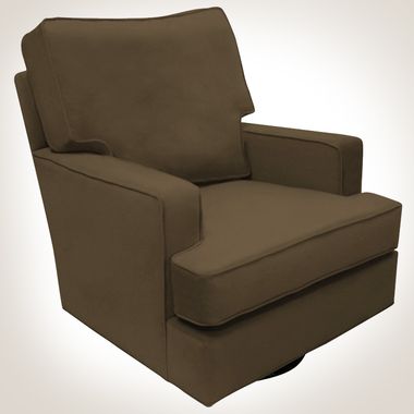 Chocolate looks wonderful in your nursery as the pretty upholstery color of the Komfy Kings Studio Glider. This pretty upholstery is soft Bella Velvet with stain resistant durability that last for a lifetime. Gliding while holding your baby is delightful and you will enjoy the quiet feature. When holding your child, you will be nicely supported with arms and pillow back that are just the right height. The medium soft, high quality foam is a delightful softness with remarkable comfort. Without rising you can swivel 360 degrees to reach anything you need and relax while gliding back and forth and singing a lullaby. This modern Studio design has a hardwood frame. you will enjoy the comfortable gliding in the nursery.